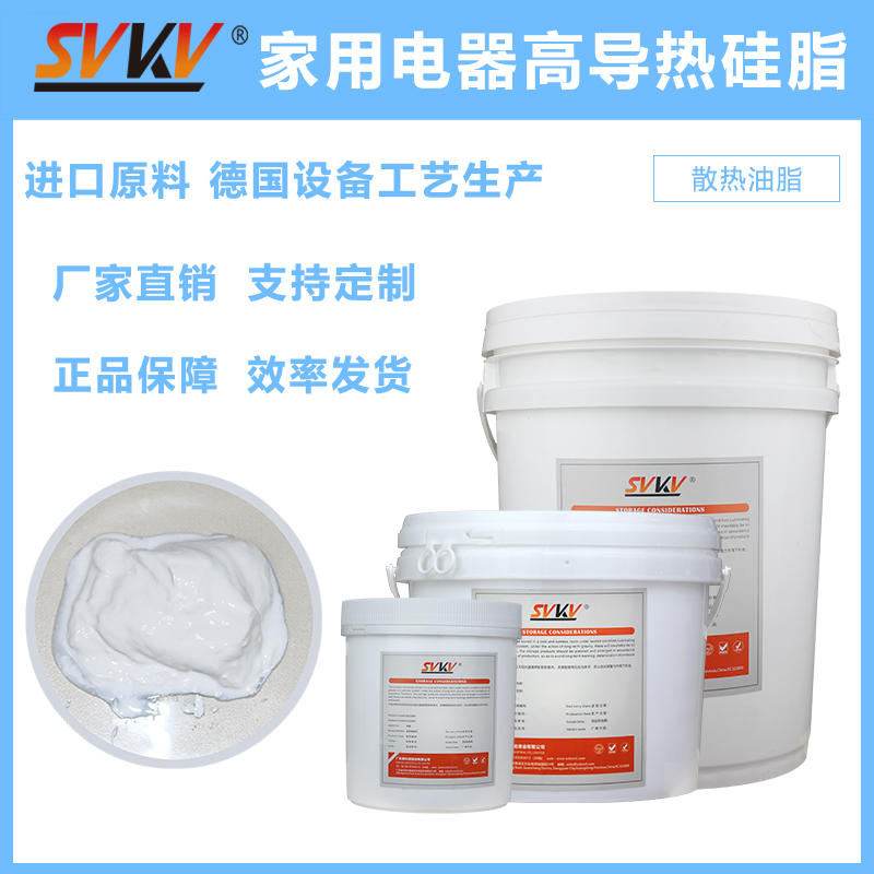 SVKV索科家用電器高導熱硅脂,耐高低溫,可適用溫度范圍廣,不易出現風干硬化或熔化現象,有利于提高器件導熱效果,改善熱轉移狀況。