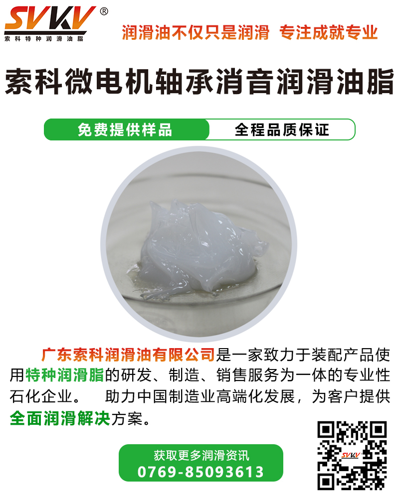 廣東索科潤滑油有限公司是一家致力于裝配產(chǎn)品使用特種潤滑脂的研發(fā)、生產(chǎn)、定制、服務(wù)為一體的專業(yè)性石化企業(yè)。致力為制造業(yè)客戶,提供專業(yè)的選油方案,協(xié)助客戶解決產(chǎn)品裝配時的潤滑難題,還可根據(jù)客戶特殊需求訂做適合的潤滑油品。有效提高產(chǎn)品性能、減低維護(hù)成本,索科助力制造業(yè)高端化發(fā)展!