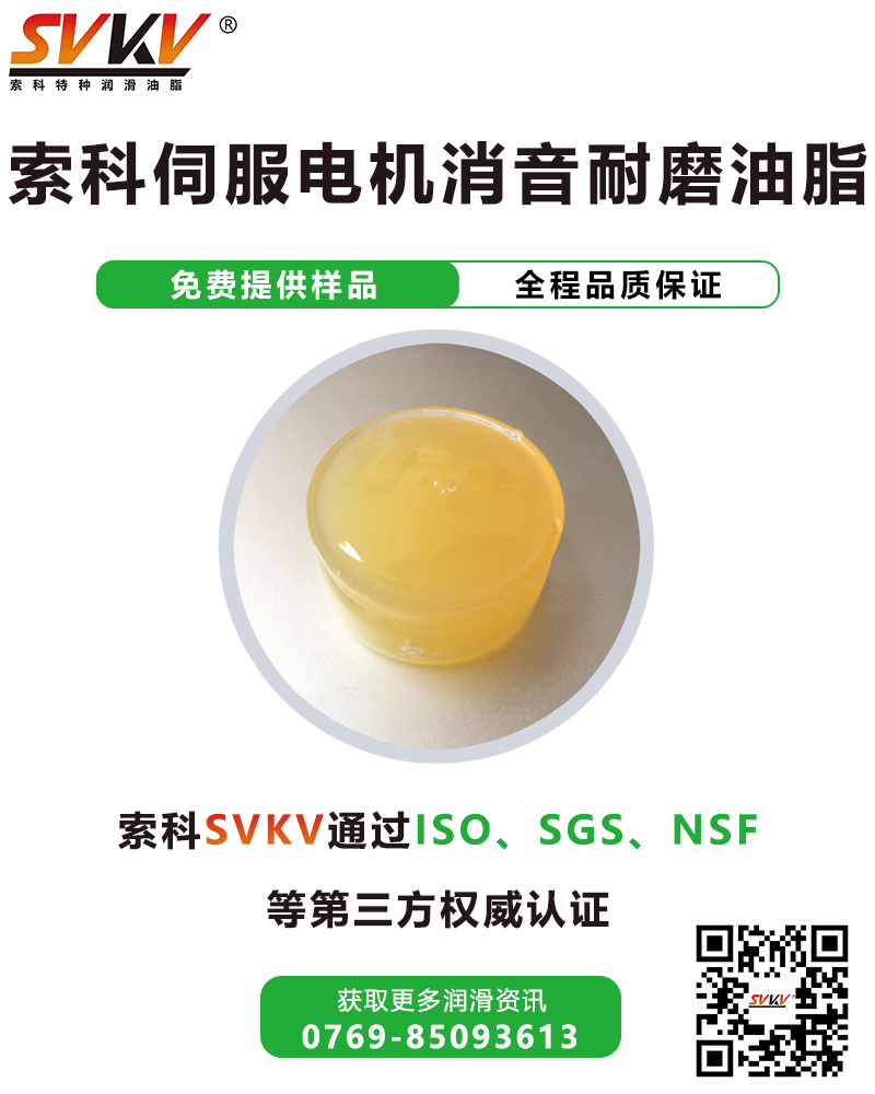 索科SVKV伺服電機(jī)消音耐磨油脂選用高性能基礎(chǔ)油,并添加多種高效抗氧化、抗腐蝕添加劑精制而成,是專(zhuān)為伺服電機(jī)齒輪消音耐磨潤(rùn)滑所研發(fā)的潤(rùn)滑油脂。索科SVKV伺服電機(jī)消音耐磨油脂能有效減少伺服電機(jī)齒輪磨損,降低噪音,延長(zhǎng)齒輪使用壽命。