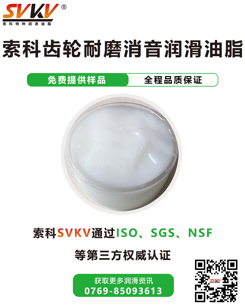 索科SVKV齒輪耐磨消音潤滑油脂,選用高性能基礎油,并添加多種高效抗氧化、抗腐蝕等添加劑精制而成,是專為各種齒輪而研制的齒輪潤滑脂。索科SVKV齒輪耐磨消音潤滑油脂,能有效減少潔面儀齒輪磨損,降低噪音,延長其使用壽命。