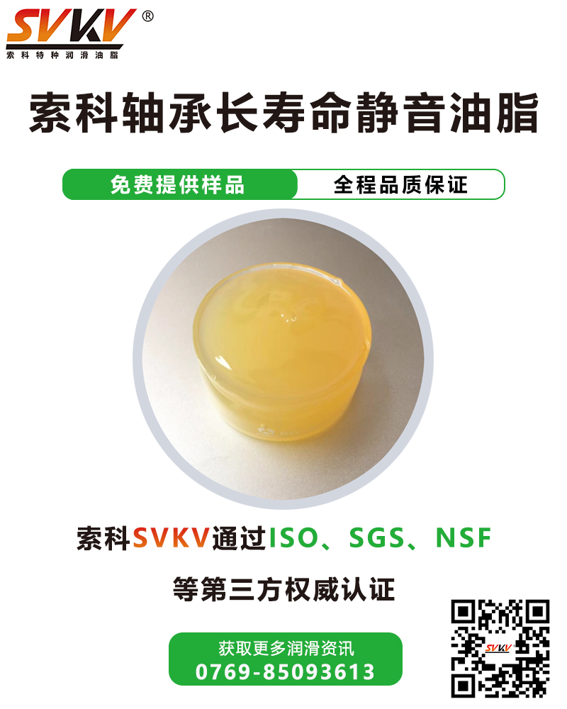 廣東索科潤(rùn)滑油有限公司是一家致力于裝配產(chǎn)品使用特種潤(rùn)滑脂的研發(fā)、生產(chǎn)、定制、服務(wù)為一體的專業(yè)性石化企業(yè)。致力為制造業(yè)客戶,提供專業(yè)的選油方案,協(xié)助客戶解決產(chǎn)品裝配時(shí)的潤(rùn)滑難題,還可根據(jù)客戶特殊需求訂做適合的潤(rùn)滑油品。有效提高產(chǎn)品性能、減低維護(hù)成本,索科助力制造業(yè)高端化發(fā)展! 主要產(chǎn)品有: 齒輪消音潤(rùn)滑脂|高溫潤(rùn)滑脂|食品級(jí)潤(rùn)滑脂|齒輪消音潤(rùn)滑脂|防水潤(rùn)滑脂 導(dǎo)電油脂|軸承油|硅油|干性皮膜潤(rùn)滑劑|低溫潤(rùn)滑脂|阻尼脂|全氟油脂