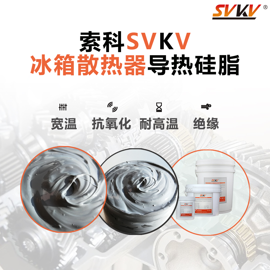 散熱器是冰箱的重要組成部分,散熱器需要良好的導熱硅脂來提升其散熱性能。索科冰箱散熱器導熱硅脂有效減少摩擦系數,延長產品壽命。