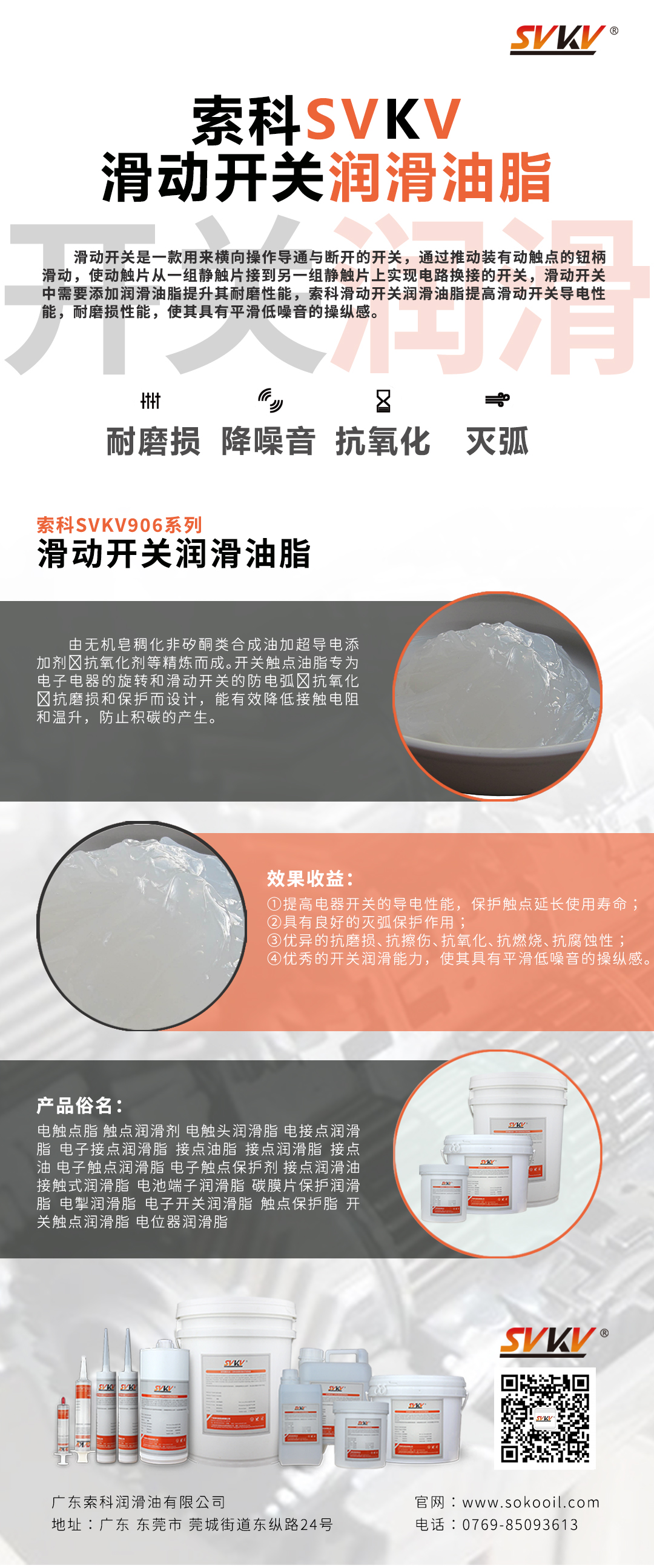 索科為企業(yè)提供潤滑方案,降本增效,適合的潤滑脂能有效提升導電性能,減少磨損,延長產(chǎn)品壽命。索科提供滑動開關潤滑油脂0769-85093613免費樣品,全程品質保證!