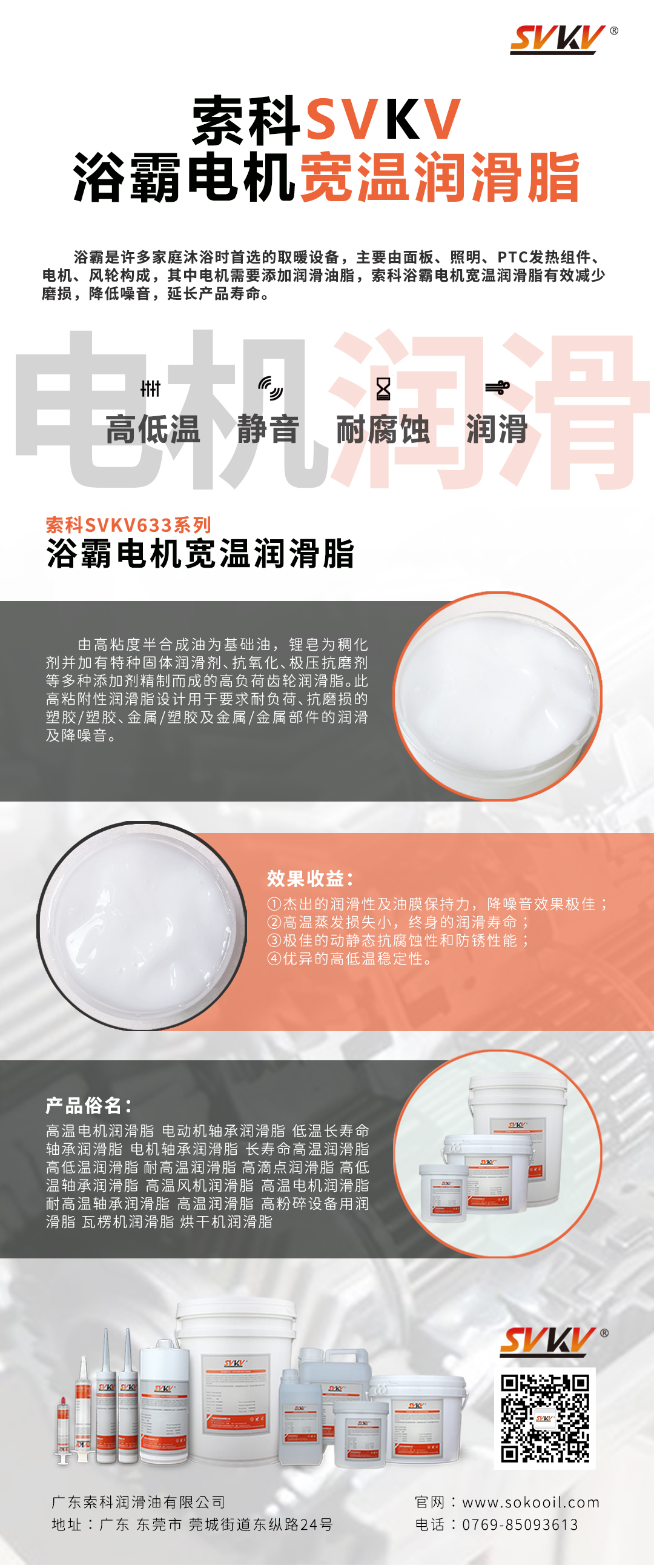 索科為企業(yè)提供潤(rùn)滑方案,降本增效,適合的潤(rùn)滑脂能有效減少磨損,降低噪音,延長(zhǎng)產(chǎn)品壽命。索科提供浴霸電機(jī)寬溫潤(rùn)滑脂0769-85093613免費(fèi)樣品,全程品質(zhì)保證!